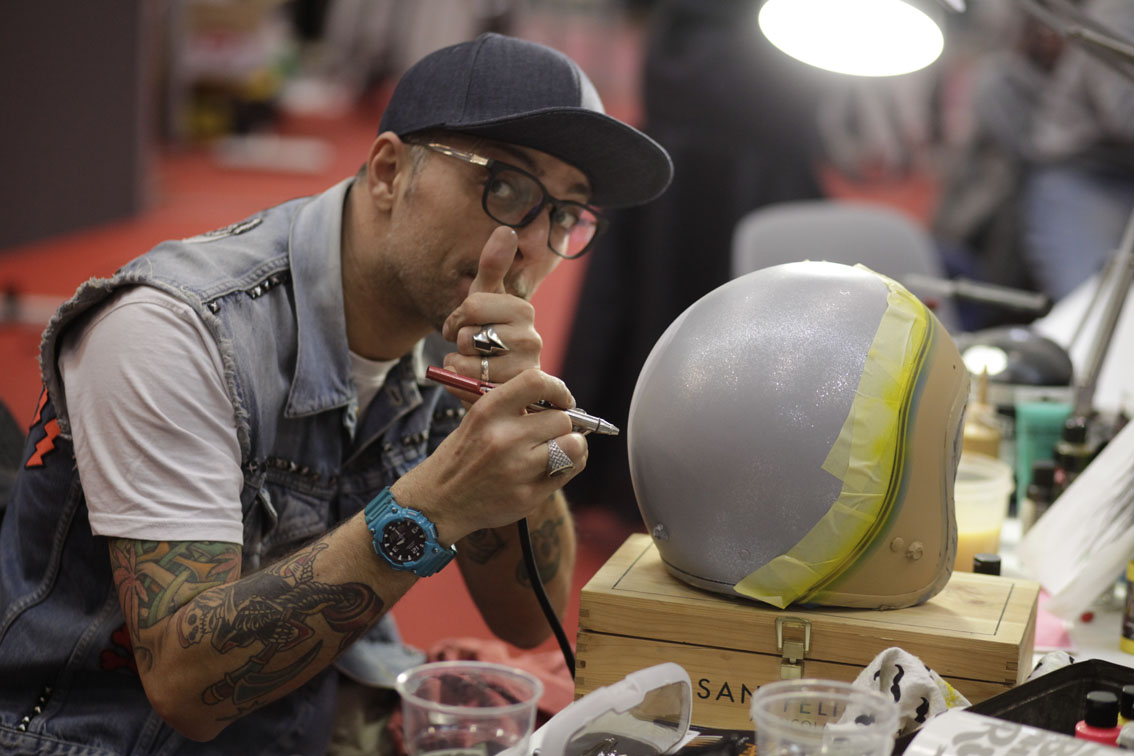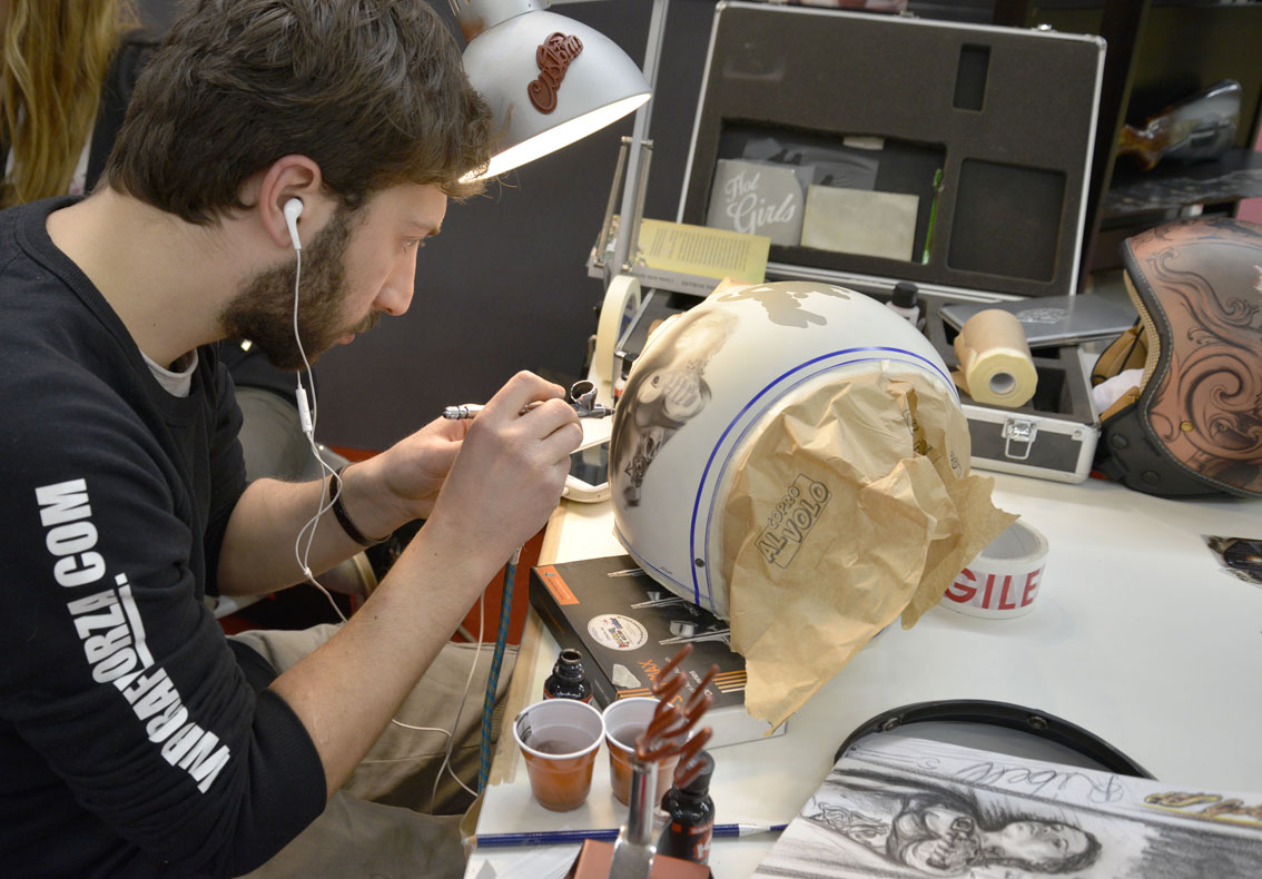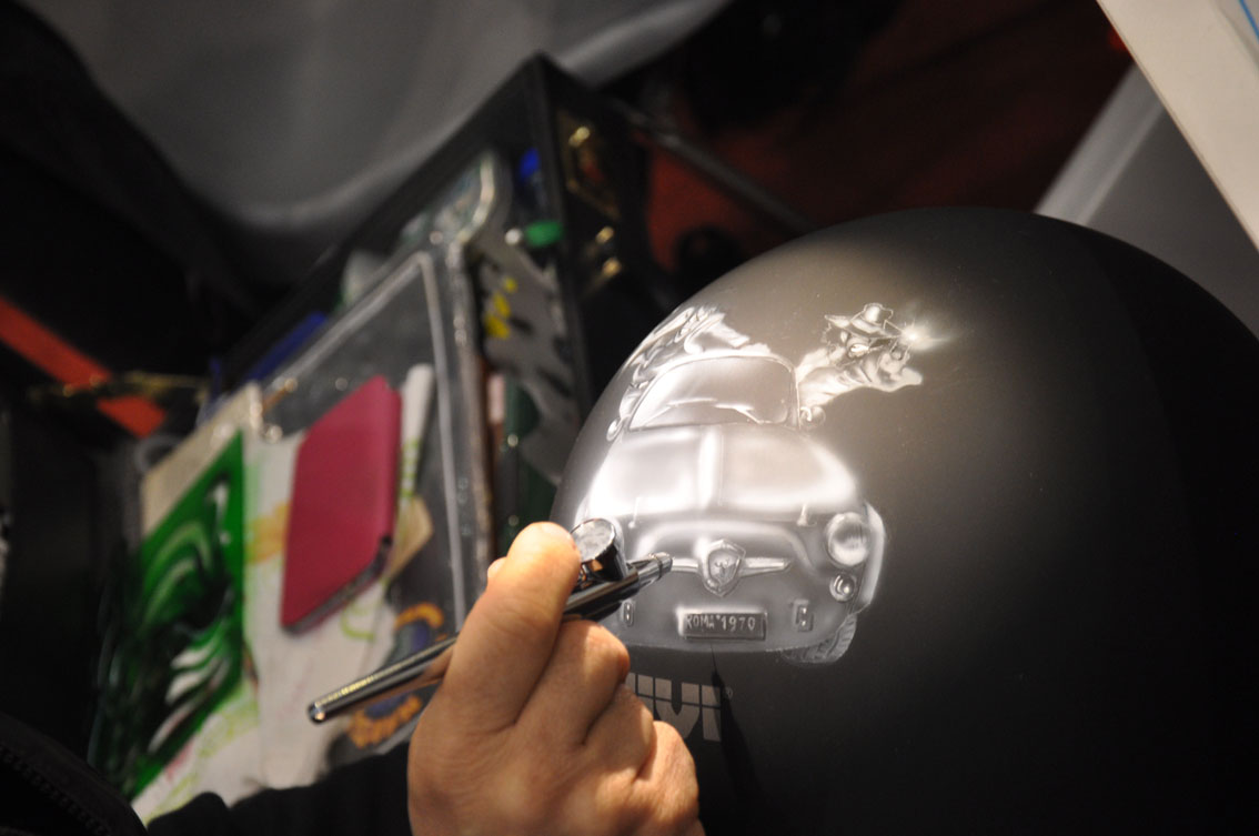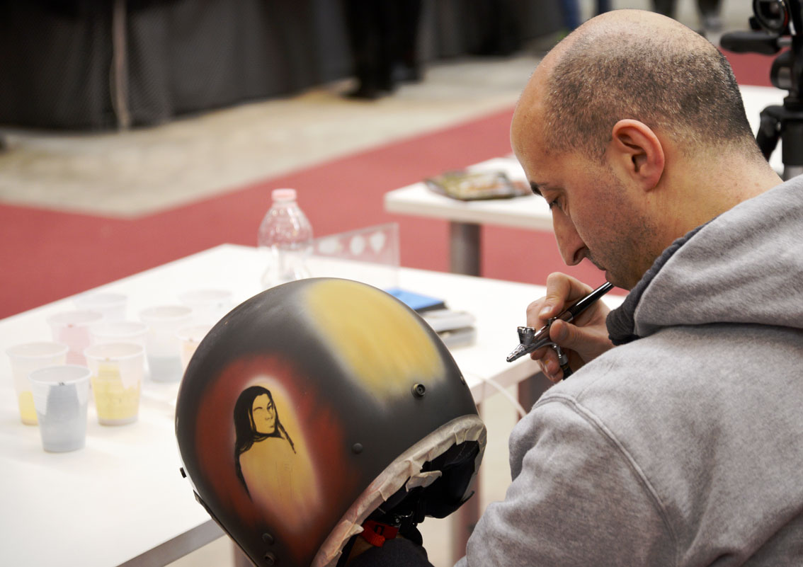 Il padiglione KROMATURE di MotoDays ha ospitato, insieme a tantissime special da sogno, una ventina di noti aerografisti arrivati in fiera per sfidarsi al “Custom Painting Show”. La “tela” utilizzata è stata la calotta del nostro casco jet dalla linea classica 20.7 Oldster. Ecco i vincitori…