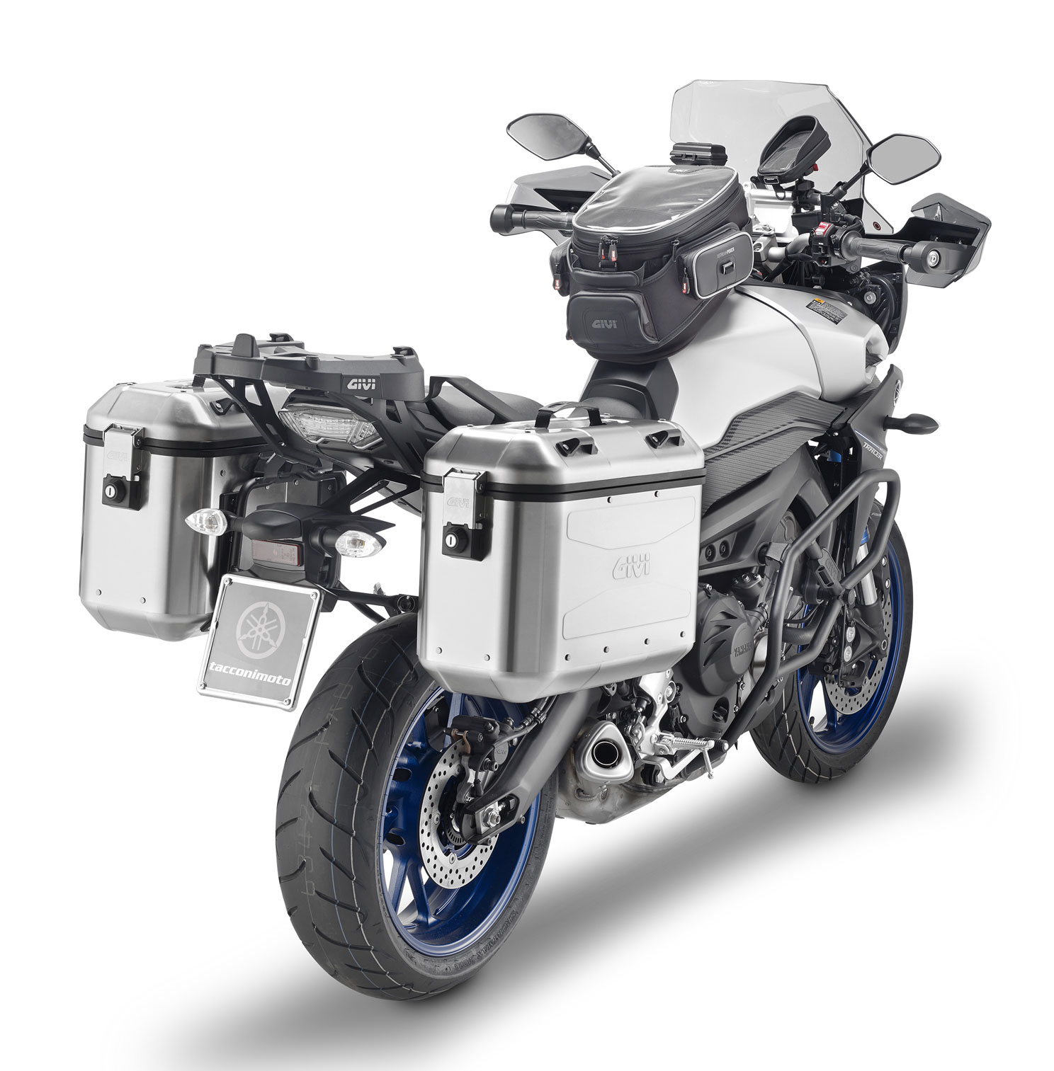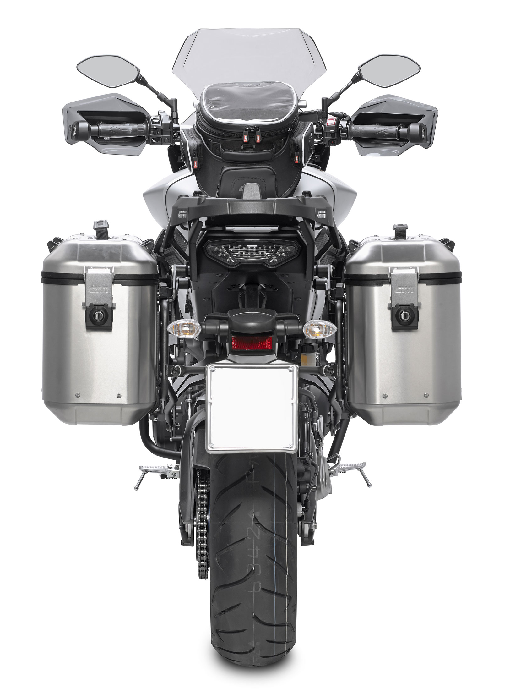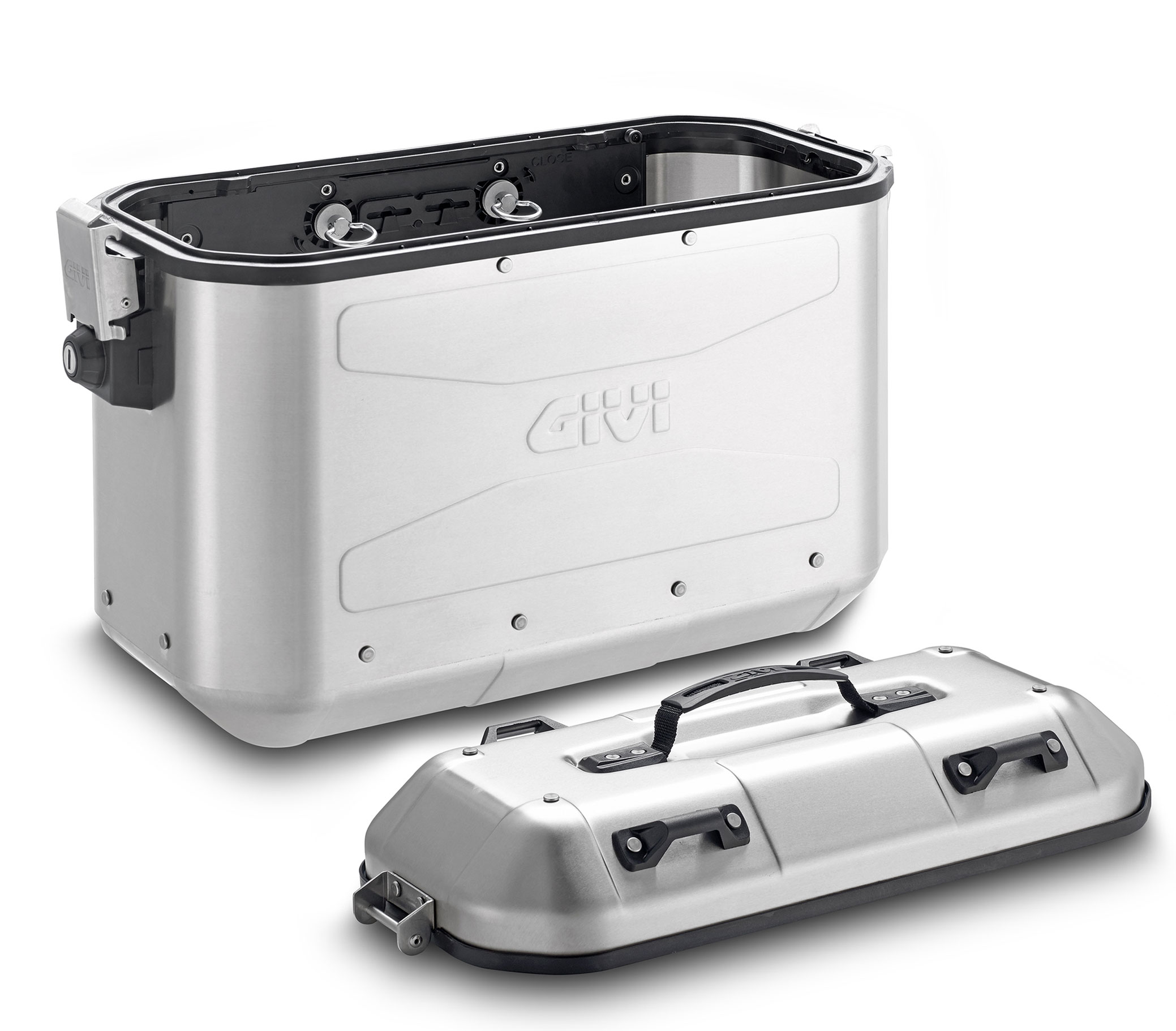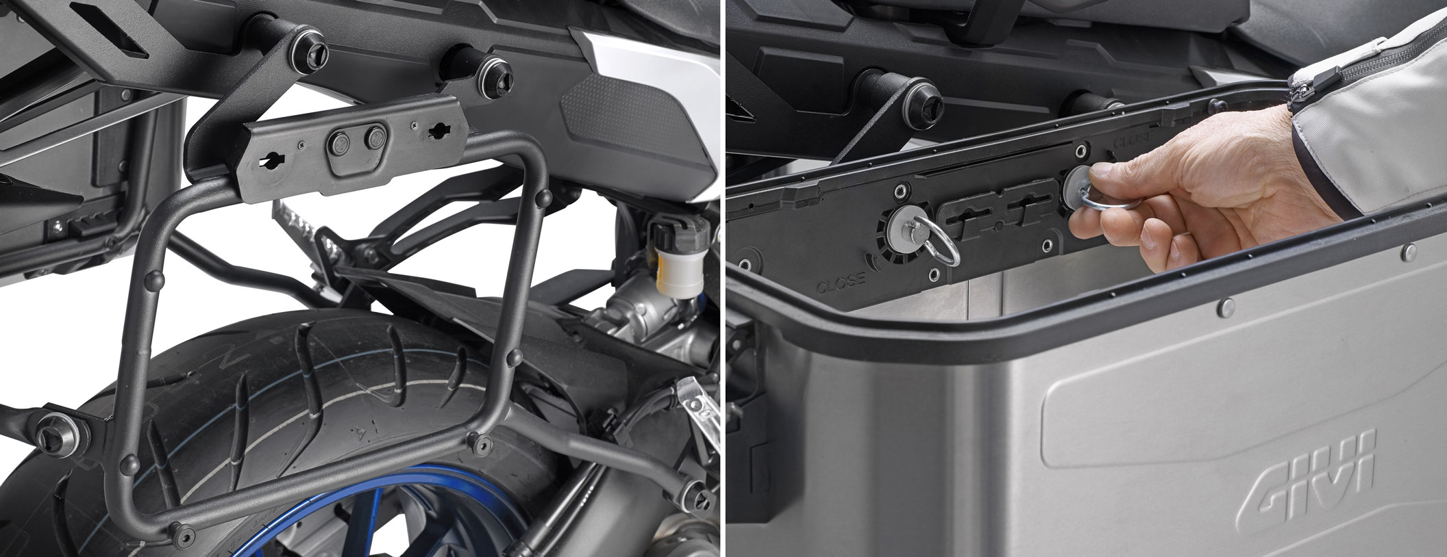 Le due laterali si aprono con la stessa chiave (hanno in dotazione serrature Security Lock); un terzo cilindretto, utilizzabile per un eventuale top-case GIVI, viene fornito di serie in modo di unificare la chiave alle tre valigie.