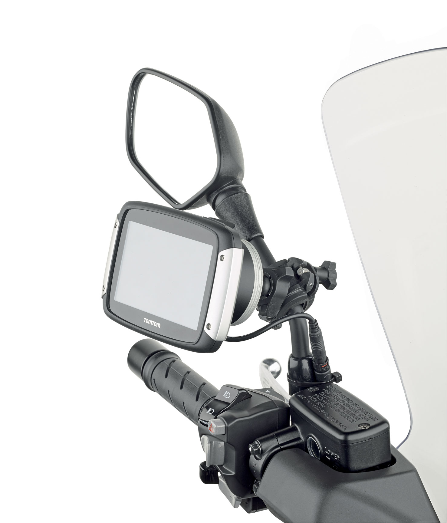 L’azienda ha fornito ai partecipanti caschi e gilet ad alta visibilità e ha ospitato la presentazione del RIDER nella sua show room, per l’occasione allestita per offrire anche un light lunch. Il suo coinvolgimento con Tom Tom va oltre l’ospitality: per il RIDER la GIVI ha realizzato, e presentato in questa occasione, l’accessorio STTR40. Si tratta di un supporto universale capace di allargare notevolmente le possibilità di fissaggio di questo esclusivo navigatore. Rispetto all’accessorio fornito di serie da Tom Tom questo di GIVI è meccanicamente più modulare, adattandosi a strutture tubolari da 8 a 35 mm (quindi anche gli specchietti retrovisori) e a sezioni irregolari (con diagonale massima di 30 mm). E se non dovesse bastare, con un secondo piccolo accessorio (Z278) è possibile ricreare un supporto adatto partendo da una “vite” accessibile in zona plancia.